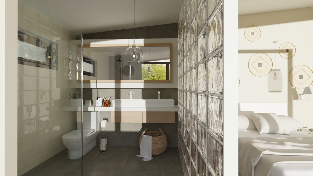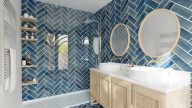 Complete your bathroom plan using Cedreo’s extensive design library of colors, materials, and bathroom fixtures. Then, share a first-person perspective to show clients how all bathroom design elements work together.