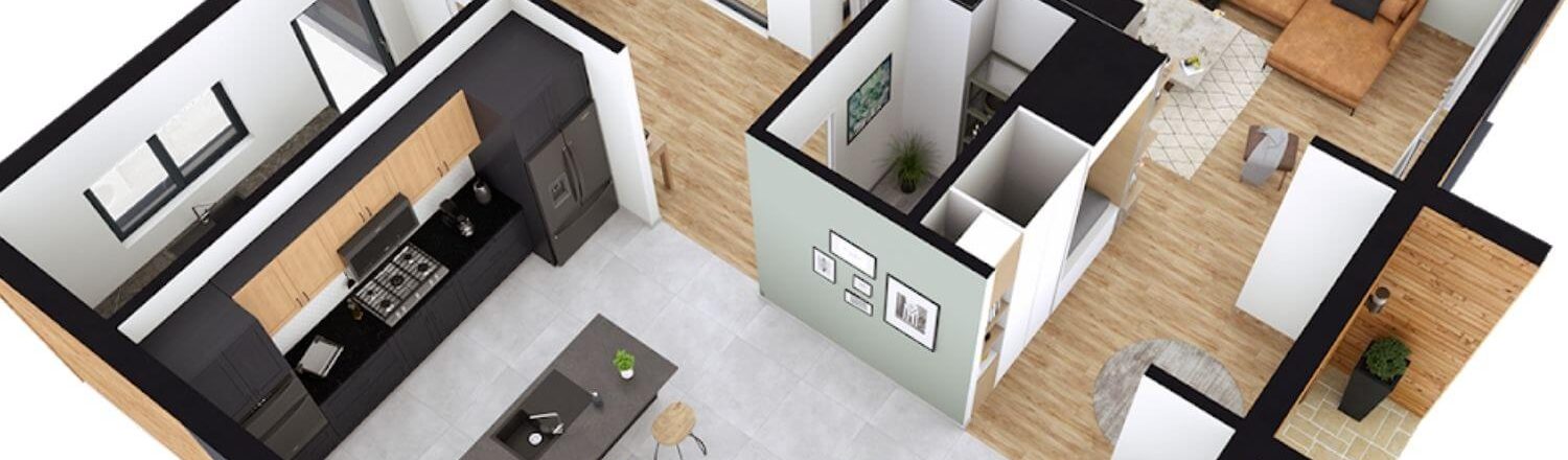 Los planos de planta 3D también son potentes herramientas de ventas. Ideal para ayudar a los clientes a visualizar un plano de distribución y evaluar el espacio disponible para la circulación una vez que la casa esté amueblada.Pero crear un plano de planta 3D veces puede ser más difícil de lo que cree. Algunos programas facilitan el proceso de creación de planos de planta en 3D al brindarle la opción de hacerlo automáticamente. A veces, la opción está disponible al crear el visual HD. El software coloca automáticamente la cámara en el lugar correcto justo encima de su representación 3D. Lo único que debe hacer es hacer clic en el botón de renderizado para obtener una vista superior en 3D de alta calidad de su plano de planta. Puede elegir mostrar el techo o no y / o los pisos superiores de la casa según lo que desee mostrar a sus clientes: vista superior del plano de planta 3D con detalles exteriores, vista superior del plano de planta 3D sin fondo o piso 3D isométrico.